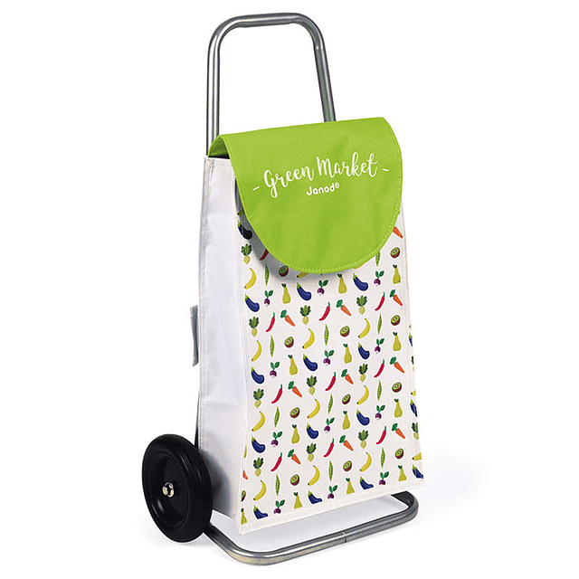 Edad: 3 a 8 años¡Nos vamos al mercado! Carrito de compras y monedero ilustrado con los colores frescos de la tienda de comestibles Green Market.Medidas: 29 x 18 x 55 cmMaterial: metal, tela.